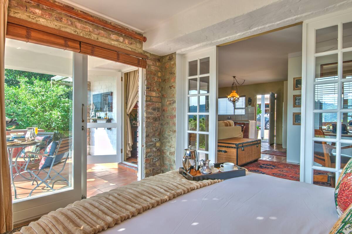 Yes, there's a lovely balcony connected to the bedroom, offering the perfect setting for a quiet moment, whether it’s sunrise or sundown in Wilderness.